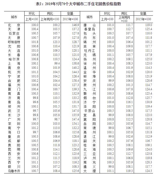 国家统计局今日发布了2019年5月份70个大中城市商品住宅销售价格变动情况统计数据。对此,国家统计局城市司高级统计师刘建伟进行了解读。 一、一二线城市新建商品住宅和二手住宅销售价格环比涨幅均与上月相同或回落;三线城市新建商品住宅涨幅略升,二手住宅涨幅与上月相同 5月份,各地继续落实好一城一策、因城施策、城市政府主体责任的长效调控机制,房地产市场继续保持稳定。初步测算,4个一线城市新建商品住宅销售价格环比上涨0.3%,涨幅比上月回落0.3个百分点。其中:北京、广州和深圳分别上涨0.6%、0.8%和0.4%,上海下降0.1%。二手住宅销售价格环比上涨0.1%,涨幅比上月回落0.3个百分点。其中:北京和深圳持平,上海上涨0.1%,广州下降0.3%。31个二线城市新建商品住宅销售价格环比上涨0.8%,涨幅与上月相同;二手住宅销售价格上涨0.5%,涨幅比上月回落0.1个百分点。35个三线城市新建商品住宅销售价格环比上涨0.8%,涨幅比上月扩大0.3个百分点;二手住宅销售价格上涨0.6%,涨幅与上月相同。 二、一二三线城市新建商品住宅和二手住宅销售价格同比涨幅均与上月相同或回落 初步测算,5月份,一线城市新建商品住宅销售价格同比上涨4.7%,涨幅与上月相同;二手住宅销售价格同比上涨0.3%,涨幅比上月回落0.5个百分点。二线城市新建商品住宅和二手住宅销售价格同比分别上涨12.1%和8.1%,涨幅比上月均回落0.2个百分点。三线城市新建商品住宅销售价格同比上涨11.3%,涨幅与上月相同;二手住宅销售价格同比上涨8.2%,涨幅比上月回落0.2个百分点。 |